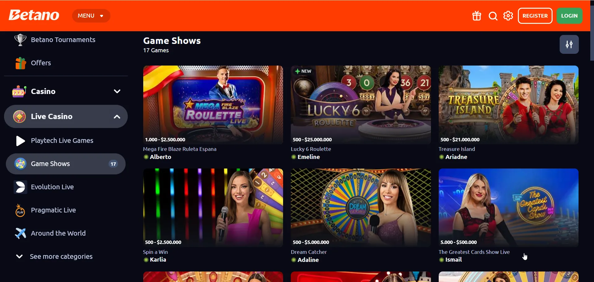 | Pragmatic Play Live | Sí (selección) | 720p–1080p adaptativo | Mega Wheel, Sweet Bonanza CandyLand, Roulette/Blackjack | Interfaz ágil, autoplay en segmentos de shows. |